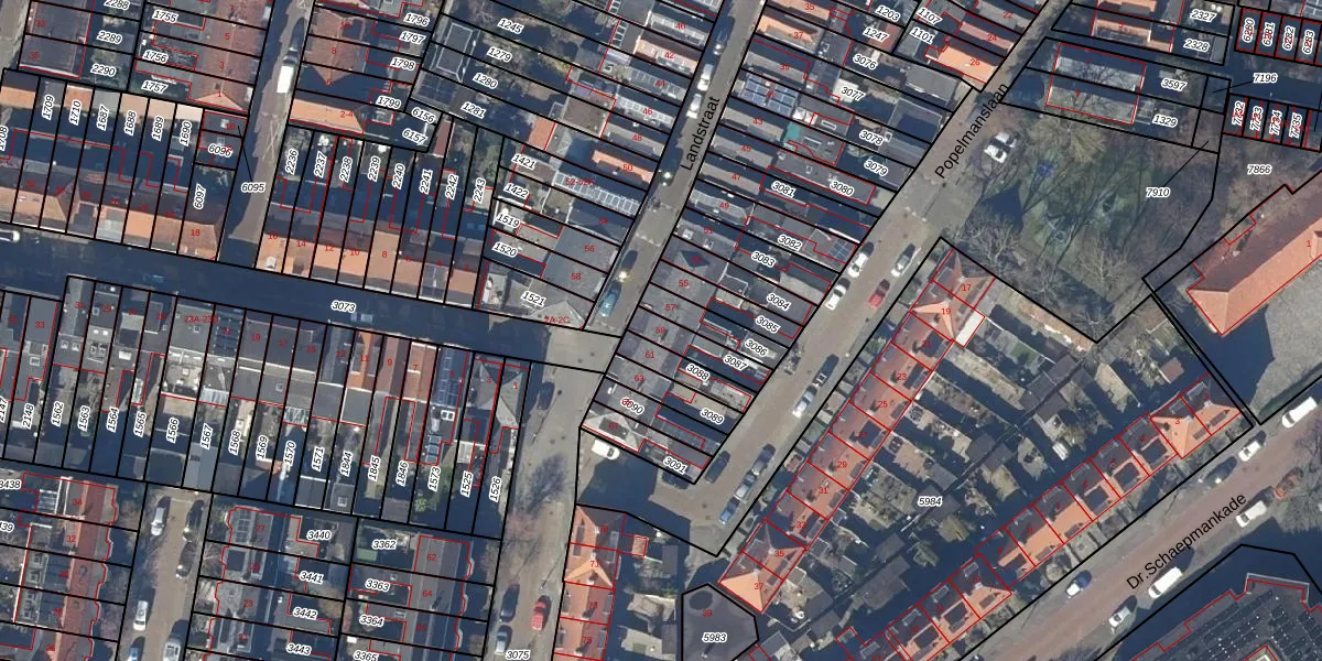 Gebruik de zoekbalk of klik op een perceel voor informatie over de adressen binnen dit perceel.