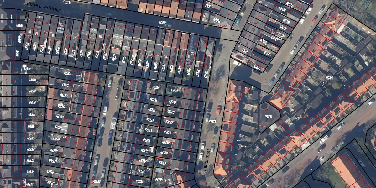 Gebruik de zoekbalk of klik op een perceel voor informatie over de adressen binnen dit perceel.
