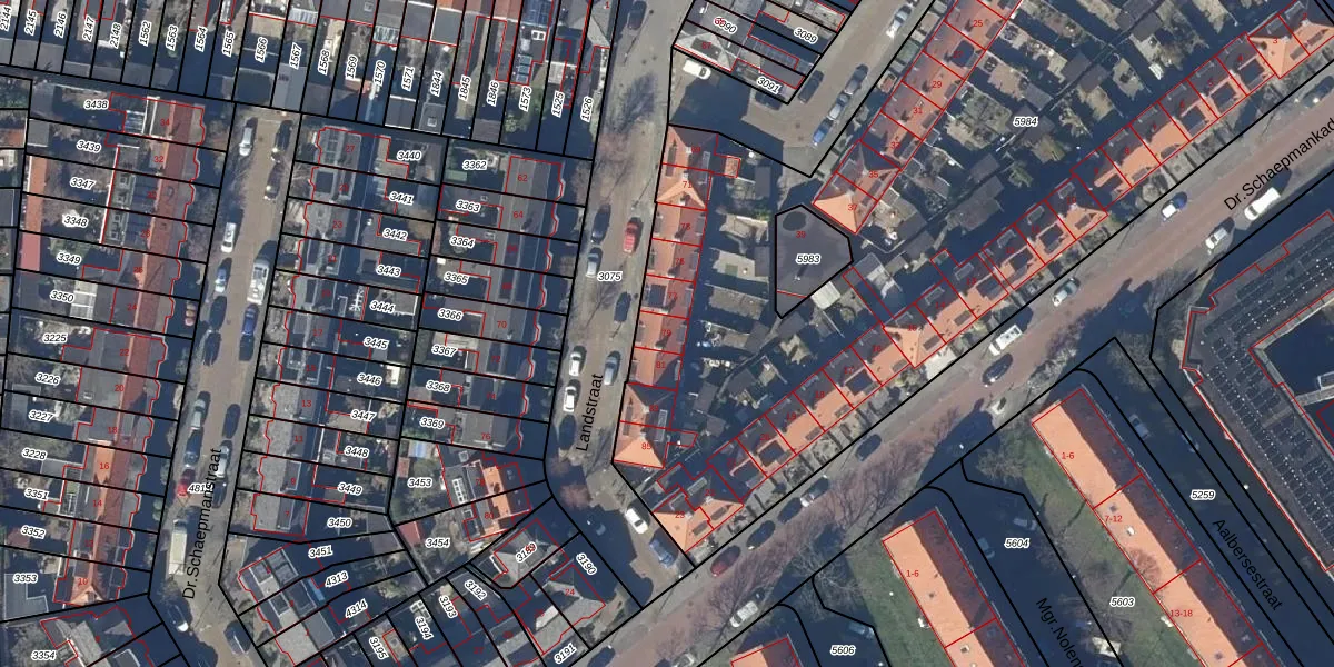 Het perceel waarop Landstraat 79 staat heeft een oppervlakte van 4910 m². Dit is een zeer groot perceel. De perceeloppervlakte wordt geregistreerd door het Kadaster. Gedetailleerde informatie over de maten van dit perceel kunt u vinden in het rapport Kadastrale kaart met maatvoering van Landstraat 79.