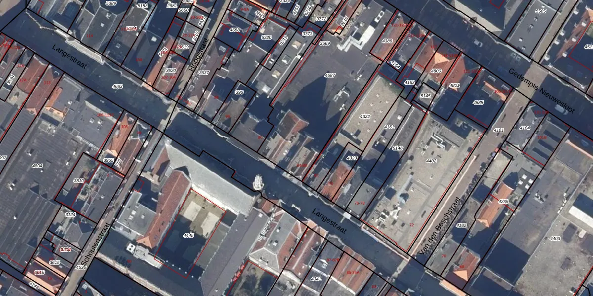 Het perceel waarop Langestraat 86-A staat heeft een oppervlakte van 1283 m². Dit is een zeer groot perceel. De perceeloppervlakte wordt geregistreerd door het Kadaster. Gedetailleerde informatie over de maten van dit perceel kunt u vinden in het rapport Kadastrale kaart met maatvoering van Langestraat 86-A.
