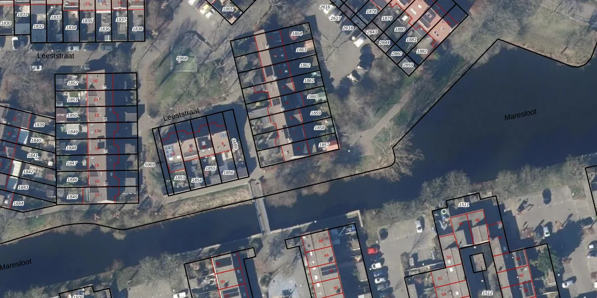 Het perceel waarop Leeststraat 8 staat heeft een oppervlakte van 153 m². Dit is een middelgroot perceel. De perceeloppervlakte wordt geregistreerd door het Kadaster. Gedetailleerde informatie over de maten van dit perceel kunt u vinden in het rapport Kadastrale kaart met maatvoering van Leeststraat 8.