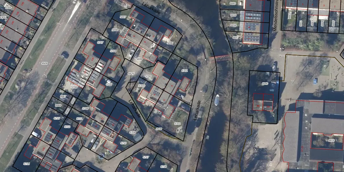 Leharkade 4 is gelegen op kadastraal perceel AMR01C5701. Deze kadastrale aanduiding is uniek en wordt gebruikt door het Kadaster om eigendomsrechten en andere zakelijke rechten vast te leggen. Het perceel maakt onderdeel uit van de kadastrale gemeente Alkmaar.