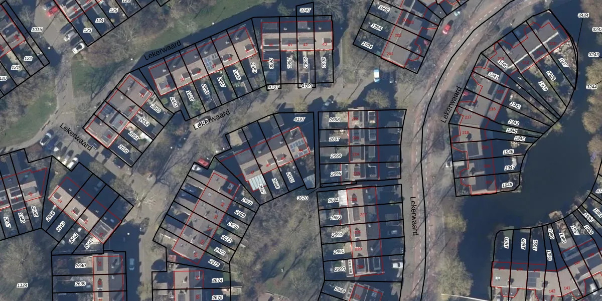 Het perceel waarop Lekerwaard 44 staat heeft een oppervlakte van 211 m². Dit is een middelgroot perceel. De perceeloppervlakte wordt geregistreerd door het Kadaster. Gedetailleerde informatie over de maten van dit perceel kunt u vinden in het rapport Kadastrale kaart met maatvoering van Lekerwaard 44.