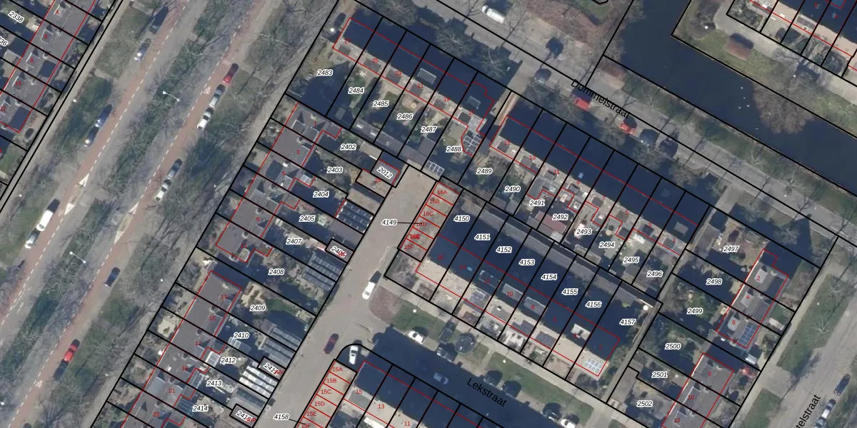 Lekstraat 16-C is gelegen op kadastraal perceel ODP02A4149. Deze kadastrale aanduiding is uniek en wordt gebruikt door het Kadaster om eigendomsrechten en andere zakelijke rechten vast te leggen. Het perceel maakt onderdeel uit van de kadastrale gemeente Oudorp.