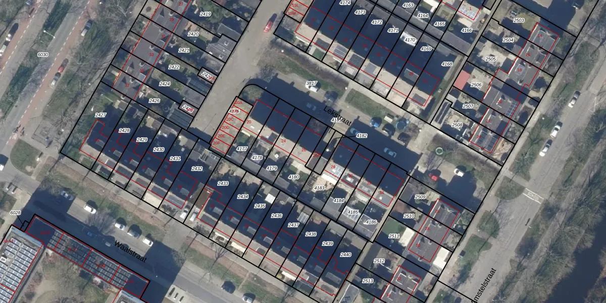Gebruik de zoekbalk of klik op een perceel voor informatie over de adressen binnen dit perceel.