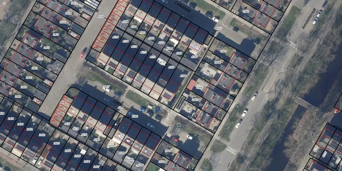 Gebruik de zoekbalk of klik op een perceel voor informatie over de adressen binnen dit perceel.