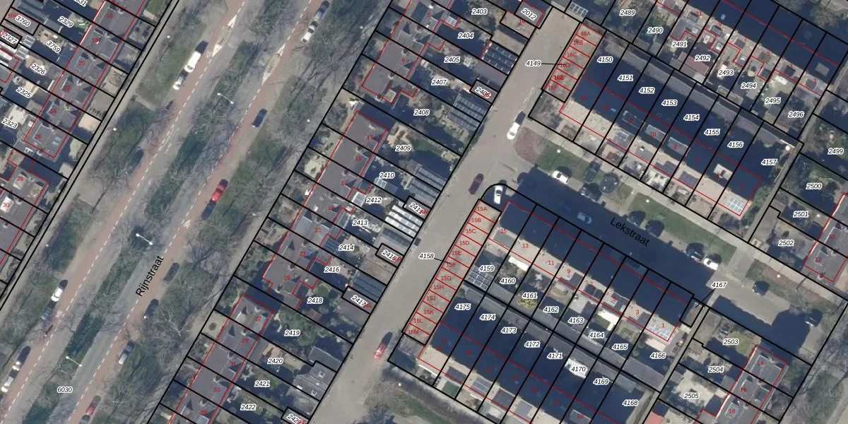 Het perceel waarop Lekstraat 36-V staat heeft een oppervlakte van 19 m². Dit is een klein perceel. De perceeloppervlakte wordt geregistreerd door het Kadaster. Gedetailleerde informatie over de maten van dit perceel kunt u vinden in het rapport Kadastrale kaart met maatvoering van Lekstraat 36-V.