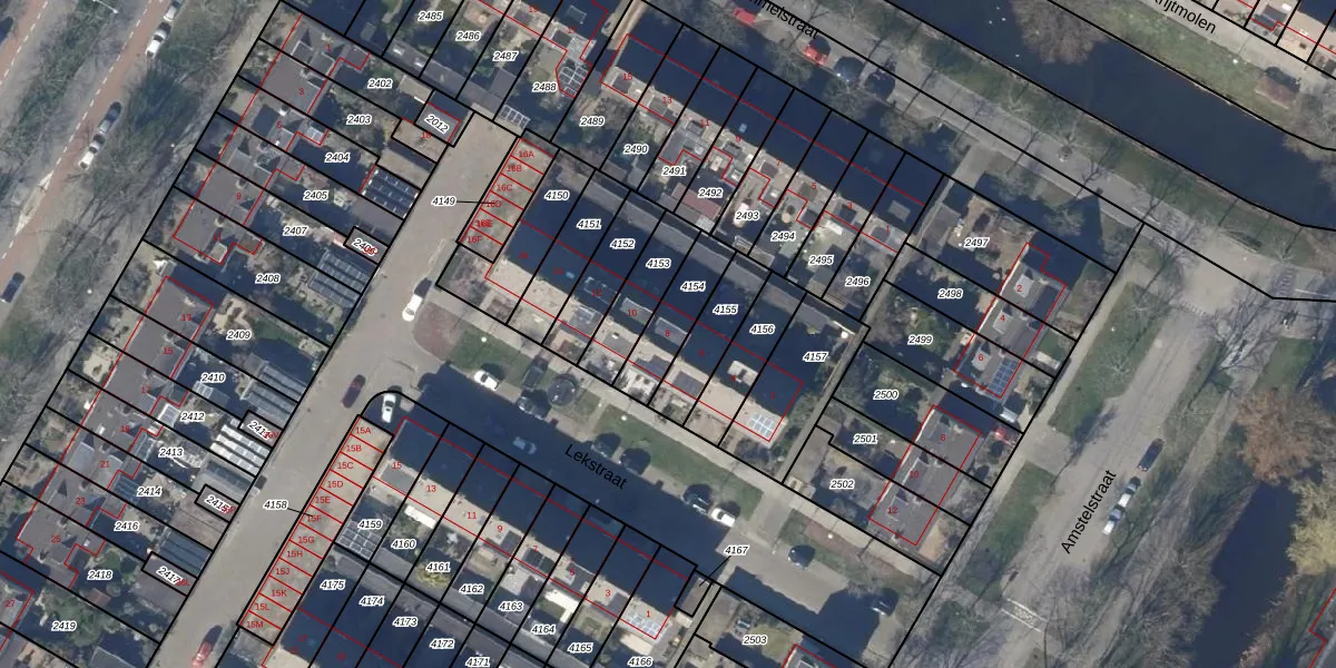 Het perceel waarop Lekstraat 8 staat heeft een oppervlakte van 163 m². Dit is een middelgroot perceel. De perceeloppervlakte wordt geregistreerd door het Kadaster. Gedetailleerde informatie over de maten van dit perceel kunt u vinden in het rapport Kadastrale kaart met maatvoering van Lekstraat 8.
