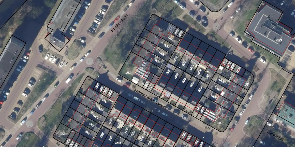 Leonard Bramerstraat 1 is gelegen op kadastraal perceel AMR01E4738. Deze kadastrale aanduiding is uniek en wordt gebruikt door het Kadaster om eigendomsrechten en andere zakelijke rechten vast te leggen. Het perceel maakt onderdeel uit van de kadastrale gemeente Alkmaar.