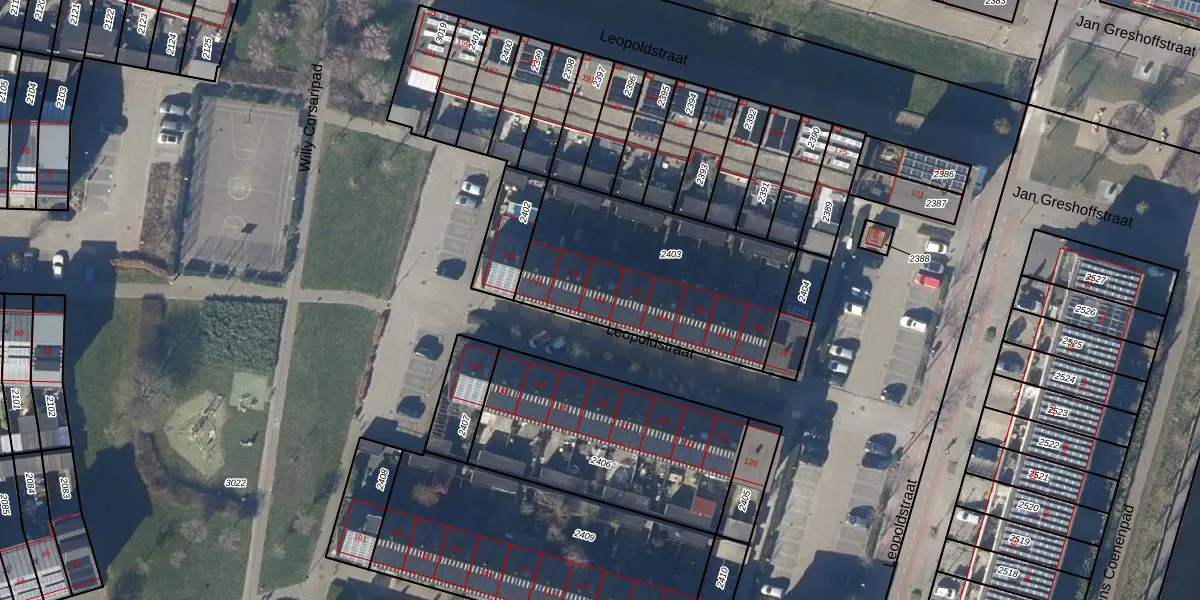 Het perceel waarop Leopoldstraat 155 staat heeft een oppervlakte van 920 m². Dit is een groot perceel. De perceeloppervlakte wordt geregistreerd door het Kadaster. Gedetailleerde informatie over de maten van dit perceel kunt u vinden in het rapport Kadastrale kaart met maatvoering van Leopoldstraat 155.