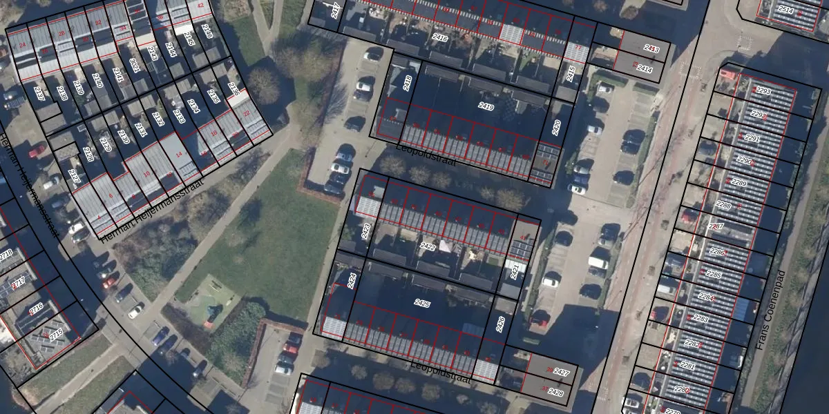 Het perceel waarop Leopoldstraat 51 staat heeft een oppervlakte van 657 m². Dit is een groot perceel. De perceeloppervlakte wordt geregistreerd door het Kadaster. Gedetailleerde informatie over de maten van dit perceel kunt u vinden in het rapport Kadastrale kaart met maatvoering van Leopoldstraat 51.