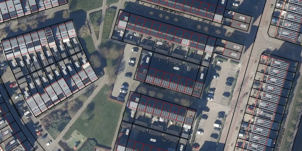 Het perceel waarop Leopoldstraat 59 staat heeft een oppervlakte van 690 m². Dit is een groot perceel. De perceeloppervlakte wordt geregistreerd door het Kadaster. Gedetailleerde informatie over de maten van dit perceel kunt u vinden in het rapport Kadastrale kaart met maatvoering van Leopoldstraat 59.