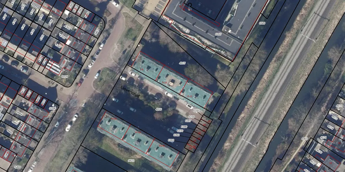 Het perceel waarop Lievenshof 9 staat heeft een oppervlakte van 1283 m². Dit is een zeer groot perceel. De perceeloppervlakte wordt geregistreerd door het Kadaster. Gedetailleerde informatie over de maten van dit perceel kunt u vinden in het rapport Kadastrale kaart met maatvoering van Lievenshof 9.