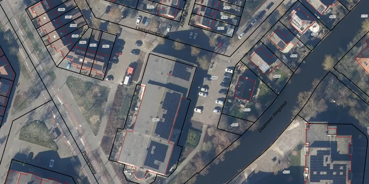 Het perceel waarop Livingstonestraat 43 staat heeft een oppervlakte van 2035 m². Dit is een zeer groot perceel. De perceeloppervlakte wordt geregistreerd door het Kadaster. Gedetailleerde informatie over de maten van dit perceel kunt u vinden in het rapport Kadastrale kaart met maatvoering van Livingstonestraat 43.