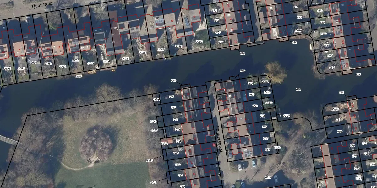 Gebruik de zoekbalk of klik op een perceel voor informatie over de adressen binnen dit perceel.
