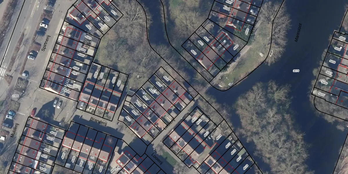 Het perceel waarop Looierij 43 staat heeft een oppervlakte van 145 m². Dit is een middelgroot perceel. De perceeloppervlakte wordt geregistreerd door het Kadaster. Gedetailleerde informatie over de maten van dit perceel kunt u vinden in het rapport Kadastrale kaart met maatvoering van Looierij 43.