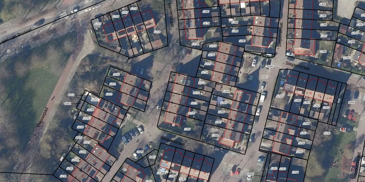 Gebruik de zoekbalk of klik op een perceel voor informatie over de adressen binnen dit perceel.