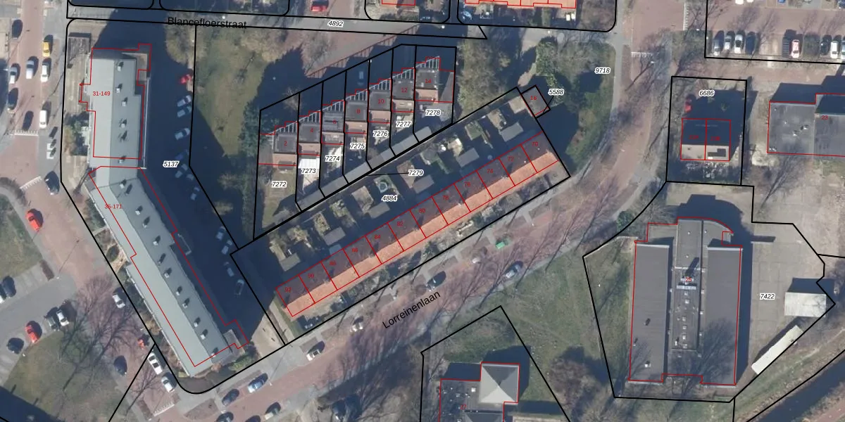 Het perceel waarop Lorreinenlaan 80 staat heeft een oppervlakte van 1974 m². Dit is een zeer groot perceel. De perceeloppervlakte wordt geregistreerd door het Kadaster. Gedetailleerde informatie over de maten van dit perceel kunt u vinden in het rapport Kadastrale kaart met maatvoering van Lorreinenlaan 80.