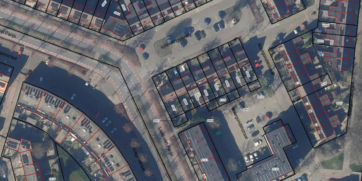 Gebruik de zoekbalk of klik op een perceel voor informatie over de adressen binnen dit perceel.