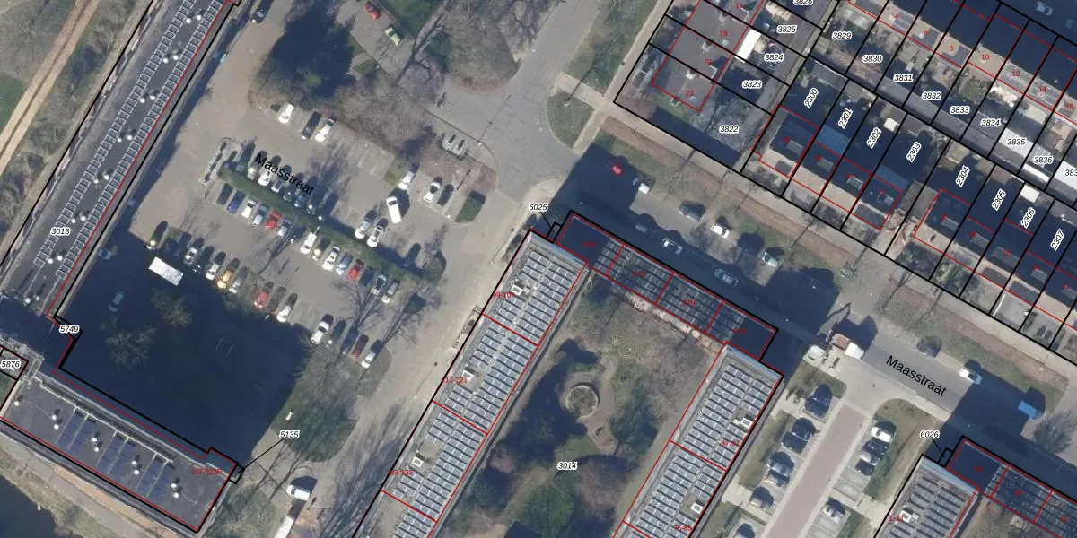 Het perceel waarop Maasstraat 101 staat heeft een oppervlakte van 4301 m². Dit is een zeer groot perceel. De perceeloppervlakte wordt geregistreerd door het Kadaster. Gedetailleerde informatie over de maten van dit perceel kunt u vinden in het rapport Kadastrale kaart met maatvoering van Maasstraat 101.