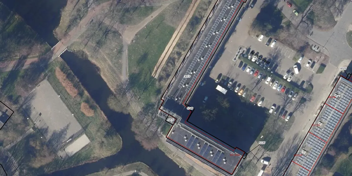 Het perceel waarop Maasstraat 235 staat heeft een oppervlakte van 1768 m². Dit is een zeer groot perceel. De perceeloppervlakte wordt geregistreerd door het Kadaster. Gedetailleerde informatie over de maten van dit perceel kunt u vinden in het rapport Kadastrale kaart met maatvoering van Maasstraat 235.