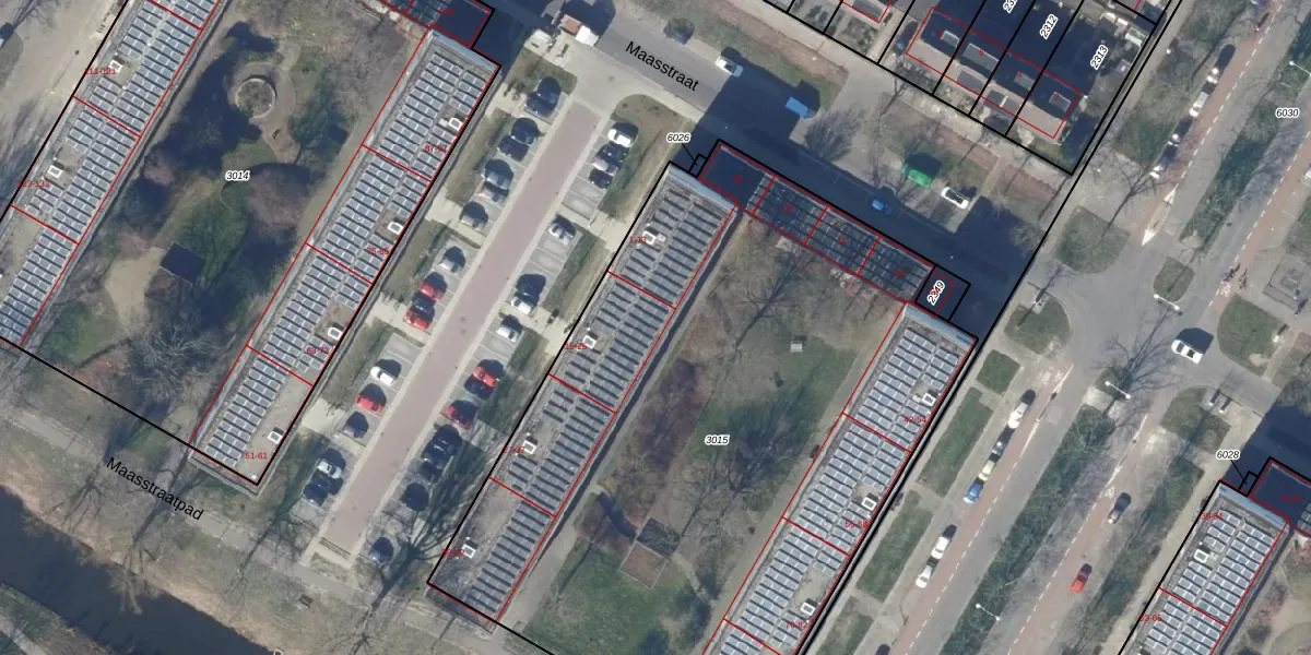 Maasstraat 25 is gelegen op kadastraal perceel ODP02A3015. Deze kadastrale aanduiding is uniek en wordt gebruikt door het Kadaster om eigendomsrechten en andere zakelijke rechten vast te leggen. Het perceel maakt onderdeel uit van de kadastrale gemeente Oudorp.
