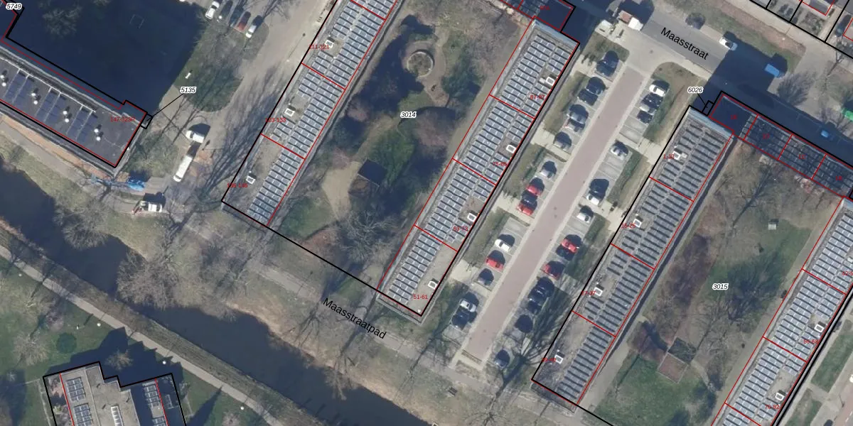 Het perceel waarop Maasstraat 71 staat heeft een oppervlakte van 4301 m². Dit is een zeer groot perceel. De perceeloppervlakte wordt geregistreerd door het Kadaster. Gedetailleerde informatie over de maten van dit perceel kunt u vinden in het rapport Kadastrale kaart met maatvoering van Maasstraat 71.