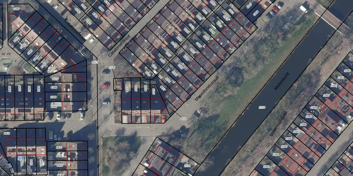 Gebruik de zoekbalk of klik op een perceel voor informatie over de adressen binnen dit perceel.