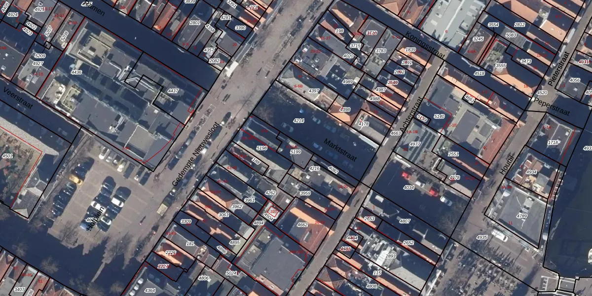Het perceel waarop Marktstraat 11 staat heeft een oppervlakte van 82 m². Dit is een klein perceel. De perceeloppervlakte wordt geregistreerd door het Kadaster. Gedetailleerde informatie over de maten van dit perceel kunt u vinden in het rapport Kadastrale kaart met maatvoering van Marktstraat 11.