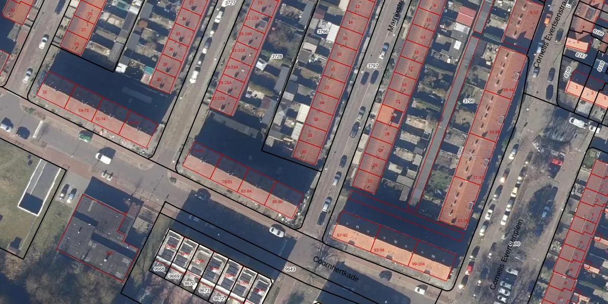 Het perceel waarop Marnixstraat 30 staat heeft een oppervlakte van 1830 m². Dit is een zeer groot perceel. De perceeloppervlakte wordt geregistreerd door het Kadaster. Gedetailleerde informatie over de maten van dit perceel kunt u vinden in het rapport Kadastrale kaart met maatvoering van Marnixstraat 30.