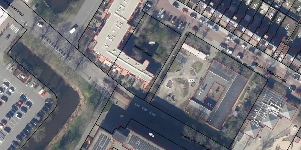 Het perceel waarop Mauritskade 56 staat heeft een oppervlakte van 1435 m². Dit is een zeer groot perceel. De perceeloppervlakte wordt geregistreerd door het Kadaster. Gedetailleerde informatie over de maten van dit perceel kunt u vinden in het rapport Kadastrale kaart met maatvoering van Mauritskade 56.