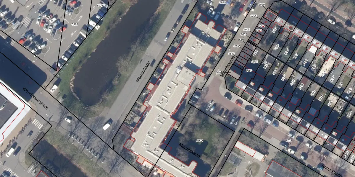 Het perceel waarop Mauritskade 86 staat heeft een oppervlakte van 3425 m². Dit is een zeer groot perceel. De perceeloppervlakte wordt geregistreerd door het Kadaster. Gedetailleerde informatie over de maten van dit perceel kunt u vinden in het rapport Kadastrale kaart met maatvoering van Mauritskade 86.