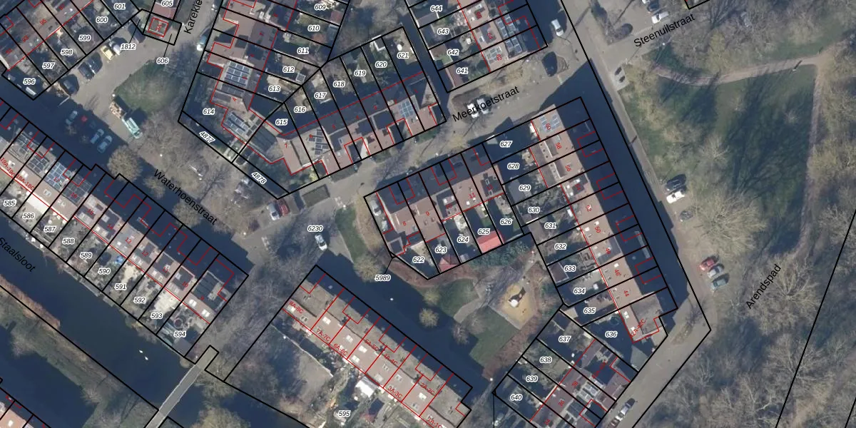 Gebruik de zoekbalk of klik op een perceel voor informatie over de adressen binnen dit perceel.