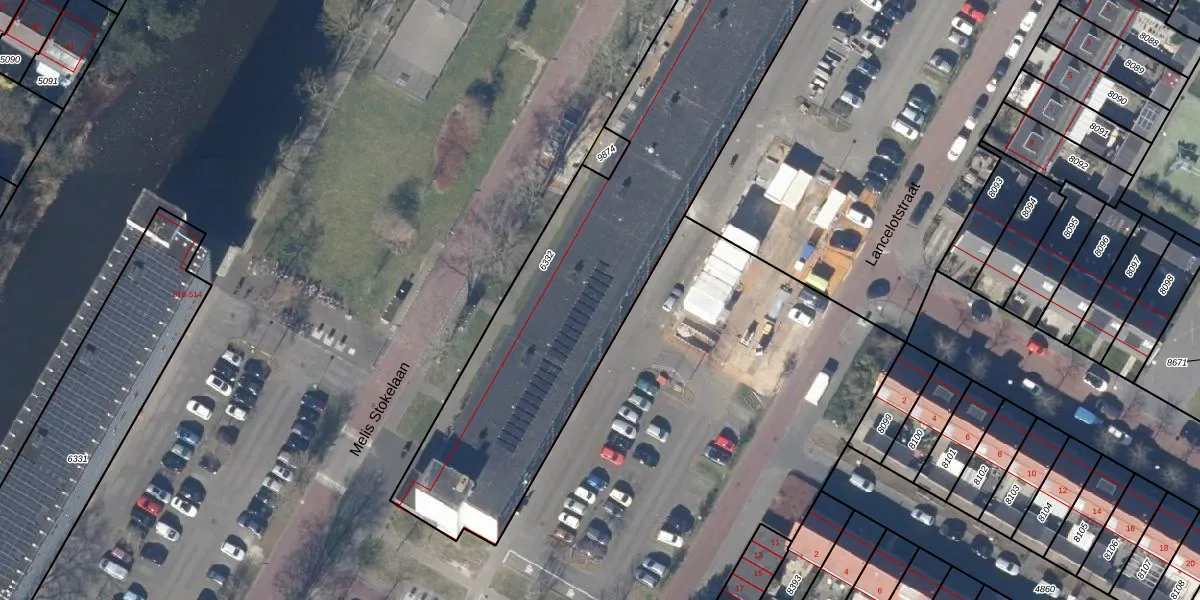 Het perceel waarop Melis Stokelaan 133 staat heeft een oppervlakte van 2546 m². Dit is een zeer groot perceel. De perceeloppervlakte wordt geregistreerd door het Kadaster. Gedetailleerde informatie over de maten van dit perceel kunt u vinden in het rapport Kadastrale kaart met maatvoering van Melis Stokelaan 133.