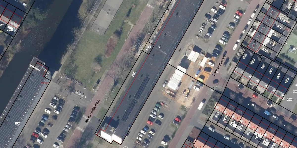 Het perceel waarop Melis Stokelaan 259 staat heeft een oppervlakte van 2546 m². Dit is een zeer groot perceel. De perceeloppervlakte wordt geregistreerd door het Kadaster. Gedetailleerde informatie over de maten van dit perceel kunt u vinden in het rapport Kadastrale kaart met maatvoering van Melis Stokelaan 259.