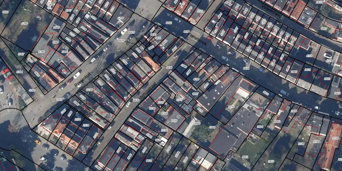Gebruik de zoekbalk of klik op een perceel voor informatie over de adressen binnen dit perceel.