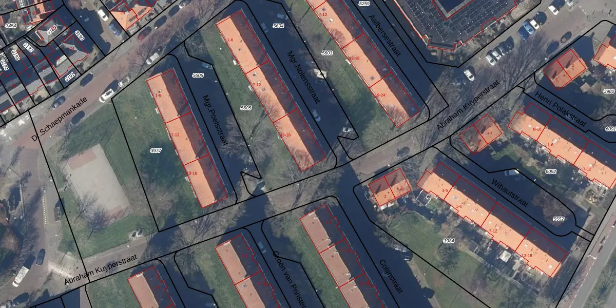Het perceel waarop Mgr.Nolensstraat 17 staat heeft een oppervlakte van 1379 m². Dit is een zeer groot perceel. De perceeloppervlakte wordt geregistreerd door het Kadaster. Gedetailleerde informatie over de maten van dit perceel kunt u vinden in het rapport Kadastrale kaart met maatvoering van Mgr.Nolensstraat 17.
