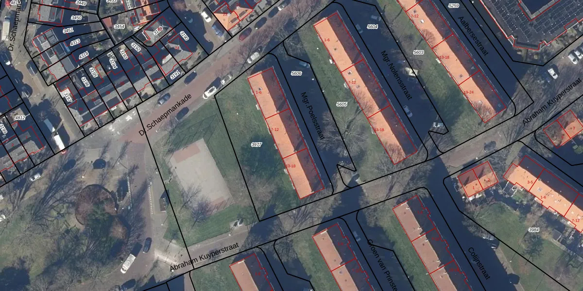 Het perceel waarop Mgr.Poelsstraat 11 staat heeft een oppervlakte van 1300 m². Dit is een zeer groot perceel. De perceeloppervlakte wordt geregistreerd door het Kadaster. Gedetailleerde informatie over de maten van dit perceel kunt u vinden in het rapport Kadastrale kaart met maatvoering van Mgr.Poelsstraat 11.