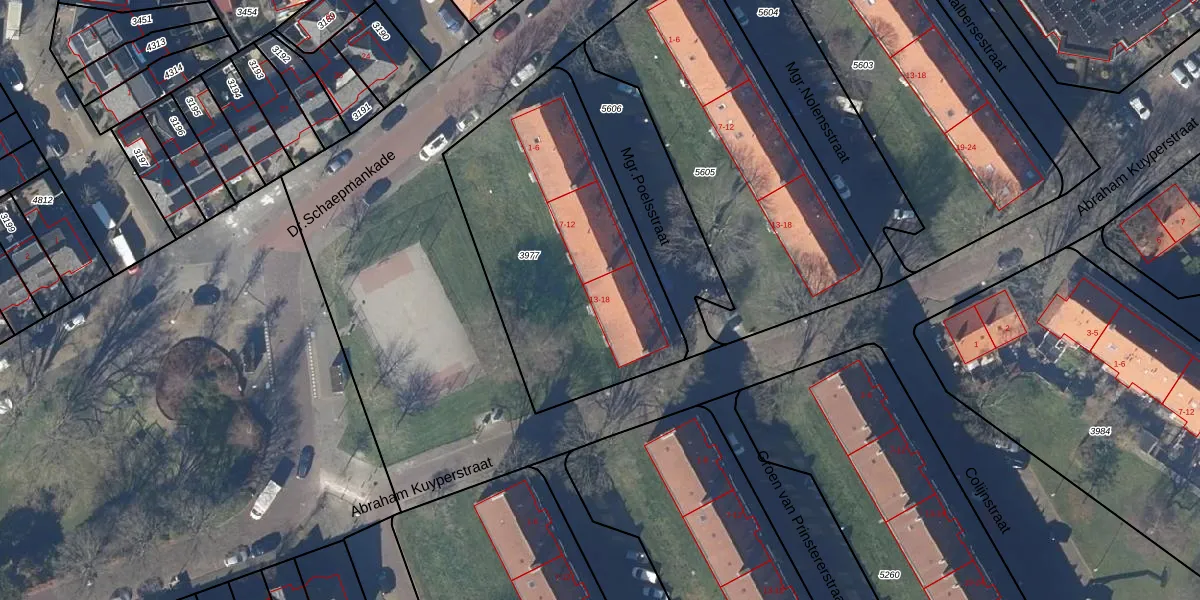 Mgr.Poelsstraat 13 is gelegen op kadastraal perceel AMR01F3977. Deze kadastrale aanduiding is uniek en wordt gebruikt door het Kadaster om eigendomsrechten en andere zakelijke rechten vast te leggen. Het perceel maakt onderdeel uit van de kadastrale gemeente Alkmaar.