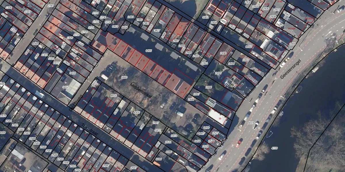 Het perceel waarop Middenstraat 2 staat heeft een oppervlakte van 1222 m². Dit is een zeer groot perceel. De perceeloppervlakte wordt geregistreerd door het Kadaster. Gedetailleerde informatie over de maten van dit perceel kunt u vinden in het rapport Kadastrale kaart met maatvoering van Middenstraat 2.