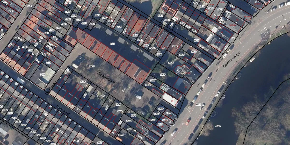 Het perceel waarop Middenstraat 3 staat heeft een oppervlakte van 1222 m². Dit is een zeer groot perceel. De perceeloppervlakte wordt geregistreerd door het Kadaster. Gedetailleerde informatie over de maten van dit perceel kunt u vinden in het rapport Kadastrale kaart met maatvoering van Middenstraat 3.