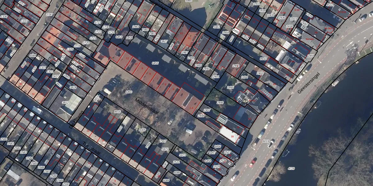 Het perceel waarop Middenstraat 4 staat heeft een oppervlakte van 1222 m². Dit is een zeer groot perceel. De perceeloppervlakte wordt geregistreerd door het Kadaster. Gedetailleerde informatie over de maten van dit perceel kunt u vinden in het rapport Kadastrale kaart met maatvoering van Middenstraat 4.