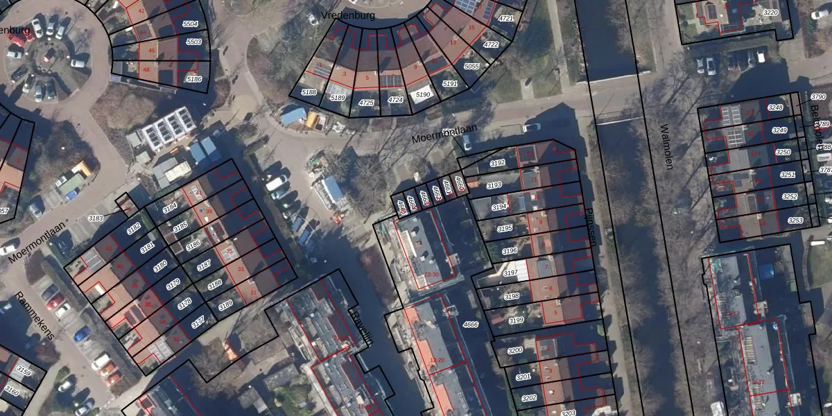 Het perceel waarop Moermontlaan 22 staat heeft een oppervlakte van 18 m². Dit is een klein perceel. De perceeloppervlakte wordt geregistreerd door het Kadaster. Gedetailleerde informatie over de maten van dit perceel kunt u vinden in het rapport Kadastrale kaart met maatvoering van Moermontlaan 22.
