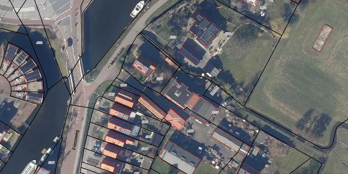 Gebruik de zoekbalk of klik op een perceel voor informatie over de adressen binnen dit perceel.