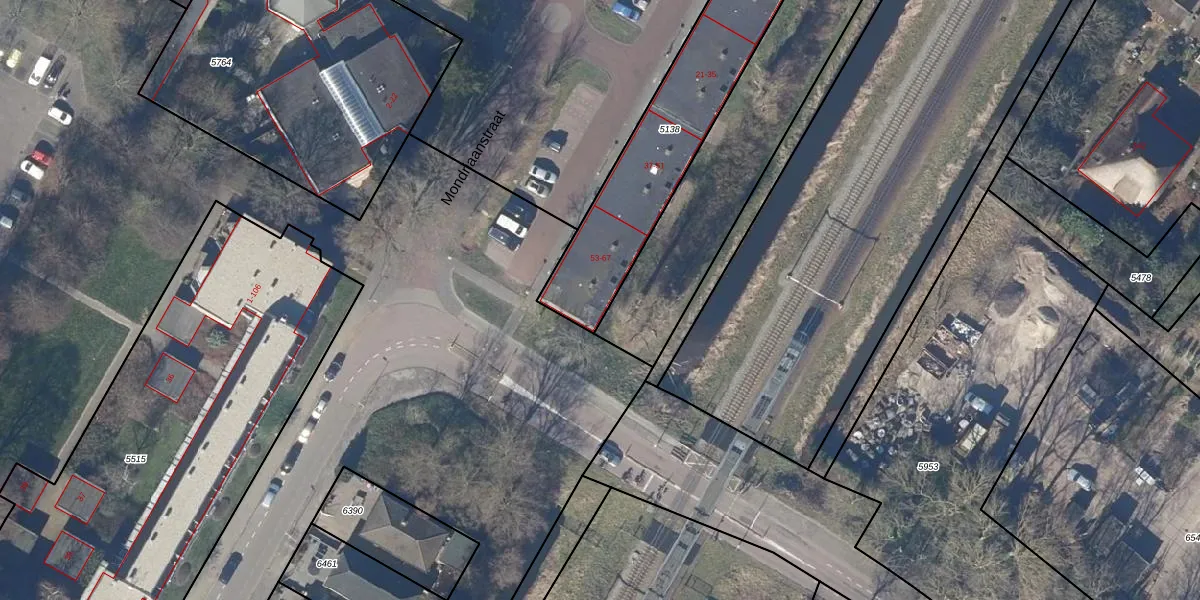 Het perceel waarop Mondriaanstraat 59 staat heeft een oppervlakte van 798 m². Dit is een groot perceel. De perceeloppervlakte wordt geregistreerd door het Kadaster. Gedetailleerde informatie over de maten van dit perceel kunt u vinden in het rapport Kadastrale kaart met maatvoering van Mondriaanstraat 59.
