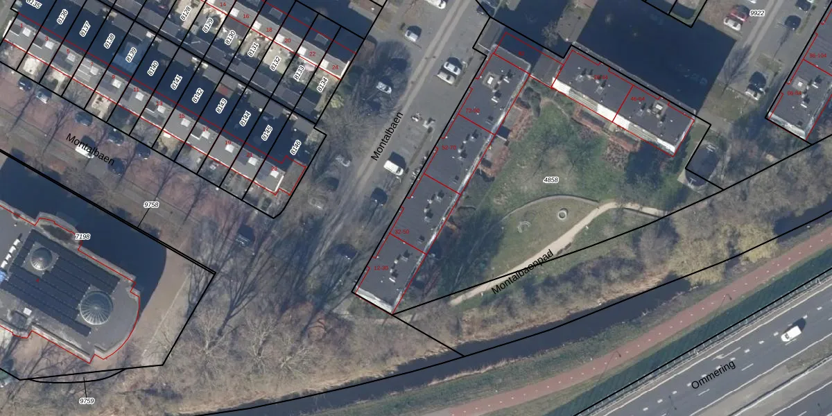 Het perceel waarop Montalbaen 34 staat heeft een oppervlakte van 3229 m². Dit is een zeer groot perceel. De perceeloppervlakte wordt geregistreerd door het Kadaster. Gedetailleerde informatie over de maten van dit perceel kunt u vinden in het rapport Kadastrale kaart met maatvoering van Montalbaen 34.
