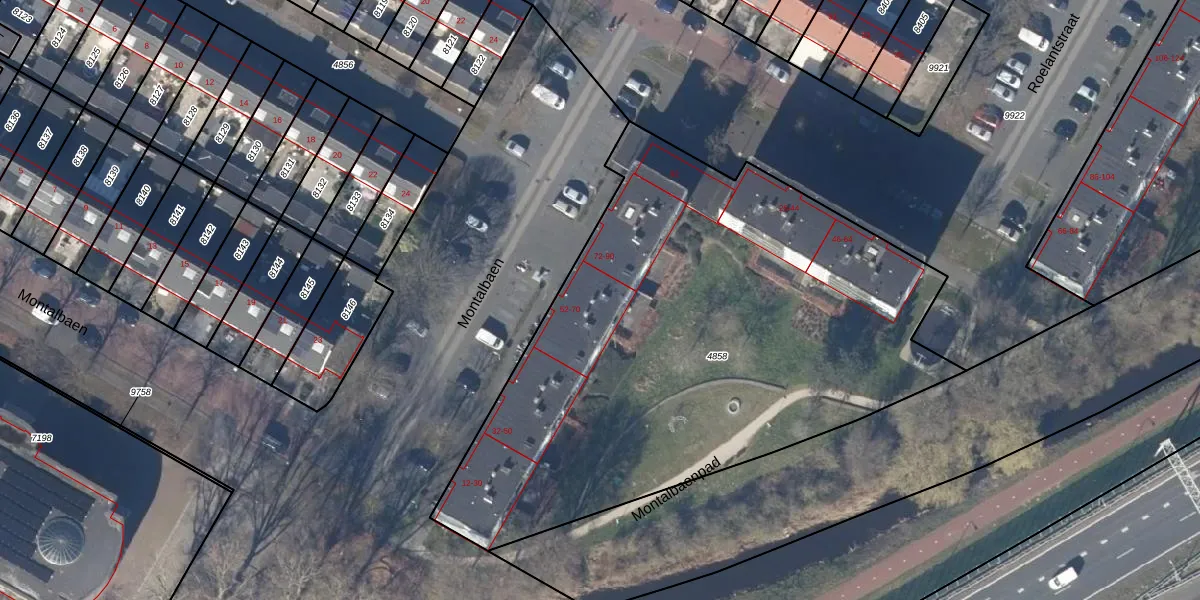 Het perceel waarop Montalbaen 60 staat heeft een oppervlakte van 3229 m². Dit is een zeer groot perceel. De perceeloppervlakte wordt geregistreerd door het Kadaster. Gedetailleerde informatie over de maten van dit perceel kunt u vinden in het rapport Kadastrale kaart met maatvoering van Montalbaen 60.