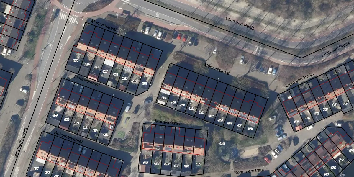 Het perceel waarop Moraviëstraat 22 staat heeft een oppervlakte van 134 m². Dit is een middelgroot perceel. De perceeloppervlakte wordt geregistreerd door het Kadaster. Gedetailleerde informatie over de maten van dit perceel kunt u vinden in het rapport Kadastrale kaart met maatvoering van Moraviëstraat 22.