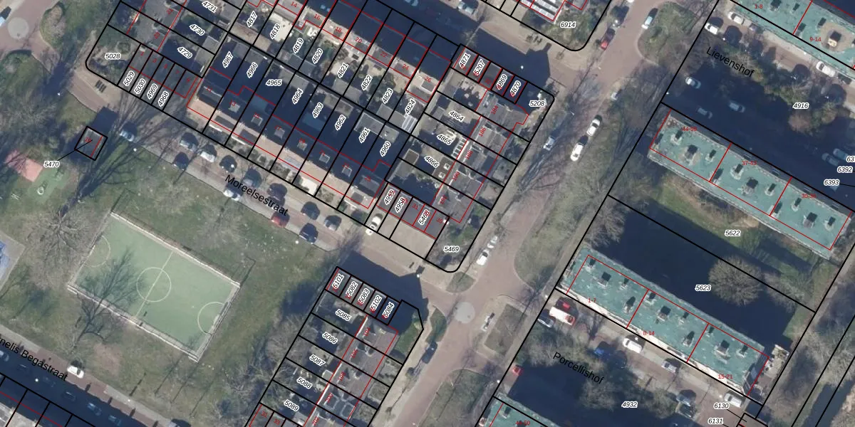 Het perceel waarop Moreelsestraat 33 staat heeft een oppervlakte van 114 m². Dit is een middelgroot perceel. De perceeloppervlakte wordt geregistreerd door het Kadaster. Gedetailleerde informatie over de maten van dit perceel kunt u vinden in het rapport Kadastrale kaart met maatvoering van Moreelsestraat 33.