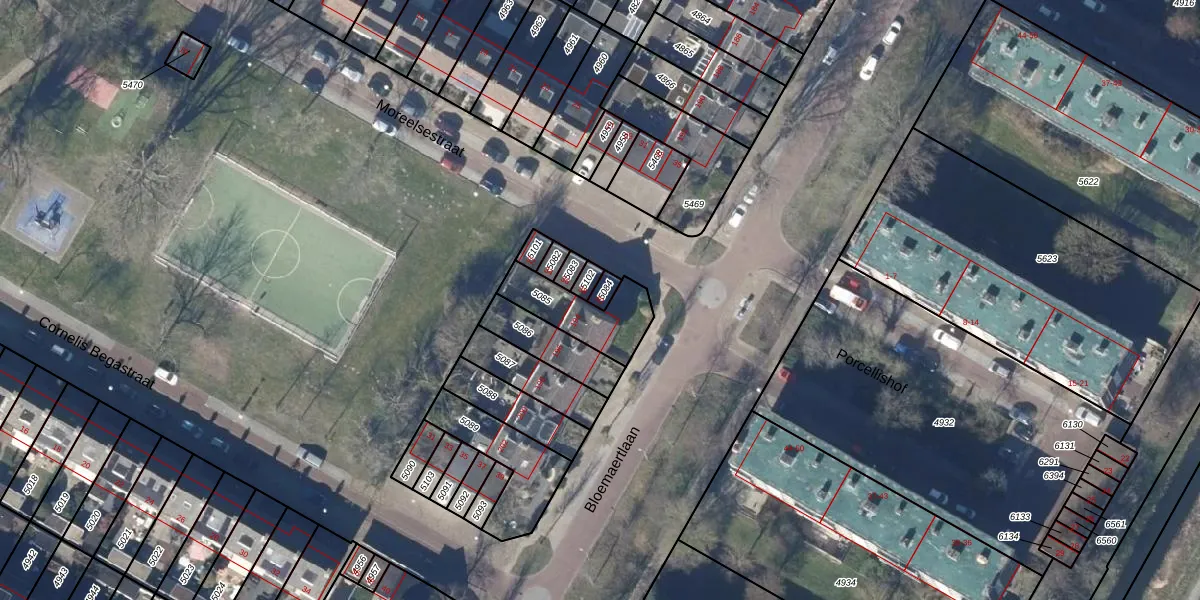 Het perceel waarop Moreelsestraat 40 staat heeft een oppervlakte van 20 m². Dit is een klein perceel. De perceeloppervlakte wordt geregistreerd door het Kadaster. Gedetailleerde informatie over de maten van dit perceel kunt u vinden in het rapport Kadastrale kaart met maatvoering van Moreelsestraat 40.